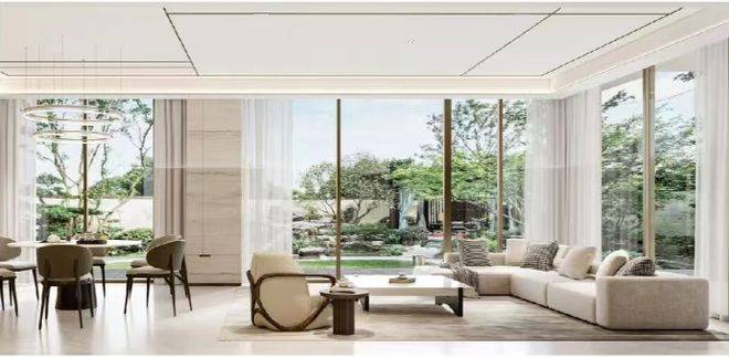 建筑设计由“中国十大豪宅缔造者”gad 蒋愈领衔,精工纯墅形制,将曲面美学融入产品,用约270°全景采光与层台叠翠设计,赋予建筑流动的艺术质感;园林景观由“新中式园林教父”GTS蓝颂宋淑华执掌,以仇英《桃花源图》为蓝本,打造沉浸式山水栖居,让四季景致与生活无缝衔接;室内设计则由“空间叙事诗人”大荷设计刘荣禄操刀,以汉代玉璧纹理为灵感,用低饱和度色阶与留白美学,演绎可触摸的墅居禅境。