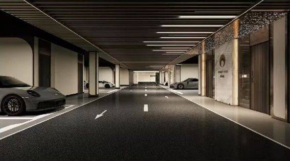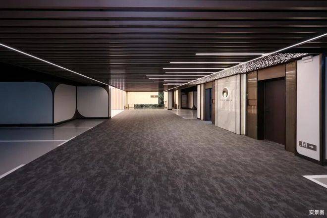 地库以定制环氧地坪、不锈钢镂空星空顶与发光灯膜、石材内嵌墙面实现高定精装设计,打造酒店式环岛·车马厅仪式·T台感车道,更通过地下入户光厅的金属饰面、仿石铝板及线条细节,绘就流光质感的归家叙事。
