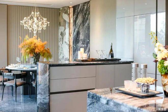 面宽奢尺:部分户型客餐厅面宽达约 9.4 米,搭配大尺度落地窗,形成开阔通透的社交核心区,即便摆放大型家具与宴请陈设,仍能保留充足活动空间,光影流淌间尽显大宅气度;