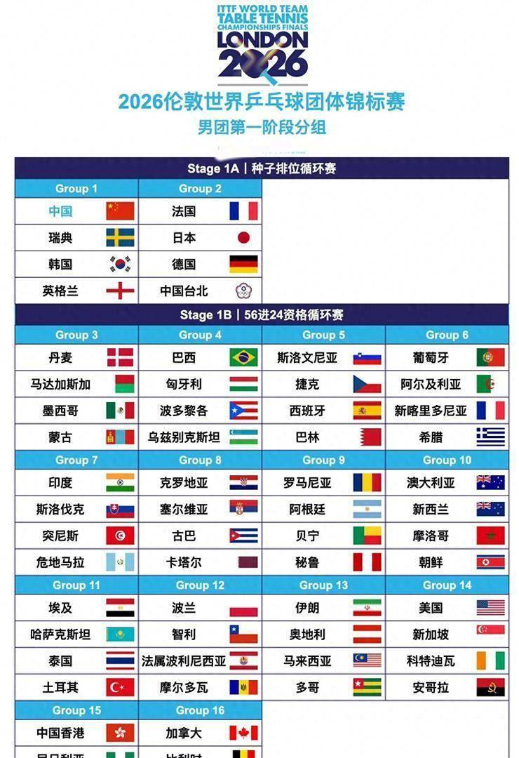 我们关注的国乒男队,作为世界排名第一,自然在“精英组”。 他们被分在了第一小组。 同组的三个对手是瑞典、韩国和英格兰。 而大家印象中的那几个强敌,像拥有勒布伦兄弟的法国队、张本智和领衔的日本队,以及波尔、邱党所在的德国队,全部被抽到了另外一个小组。