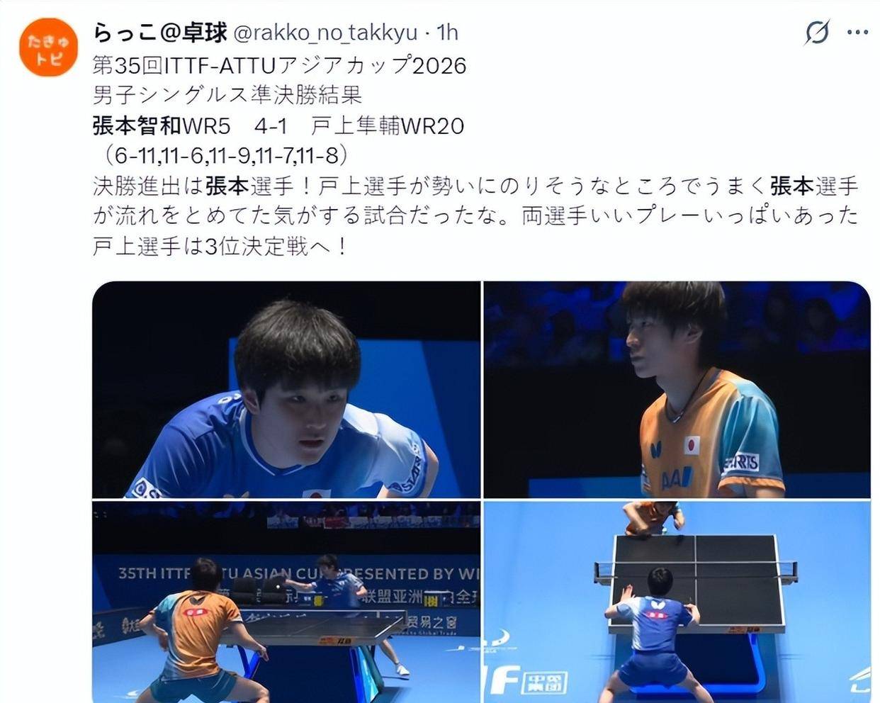 王楚钦这次是卫冕冠军,世界排名第一,但压力也不小。 国乒男单就剩他一个“独苗”了,林诗栋早早在八强战被户上隼辅爆冷淘汰,搞得下半区就靠他一个人死守。 张本智和倒是挺会挑时候状态回升,小组赛跌跌撞撞,淘汰赛反而稳了,连扳四局逆转户上隼辅,赛后日本媒体还夸他“明显更强”。