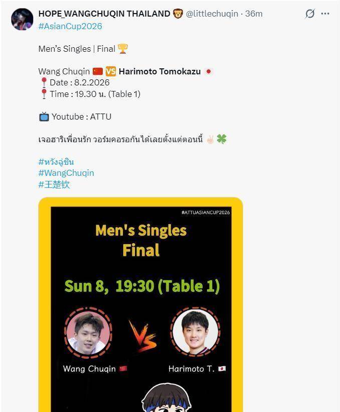 这次决赛前,张本智和学乖了,没再喊什么“必胜”口号,毕竟2026赛季开局他几次豪言都被打脸。 但王楚钦也不敢怠慢,毕竟国乒男单今年亚洲杯表现有点悬,好几个小将提前出局,就指着他兜底。 赛前训练时,王楚钦的手腕发力已经恢复到42公斤,医疗团队还专门给他做了分段式负荷计划,就怕旧伤复发。