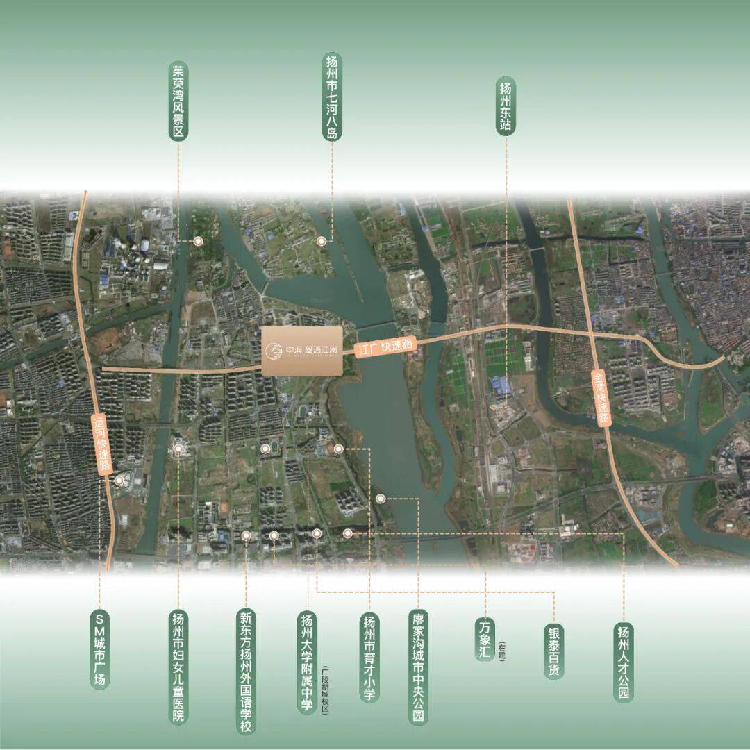 直距江广快速路约500米,毗邻万福大桥、壁虎河大桥,联通文昌路、江平快速路、运河快速路,往西直达扬州芯、瘦西湖、扬州站;往东可至高铁东站、扬泰机场,畅达全国。